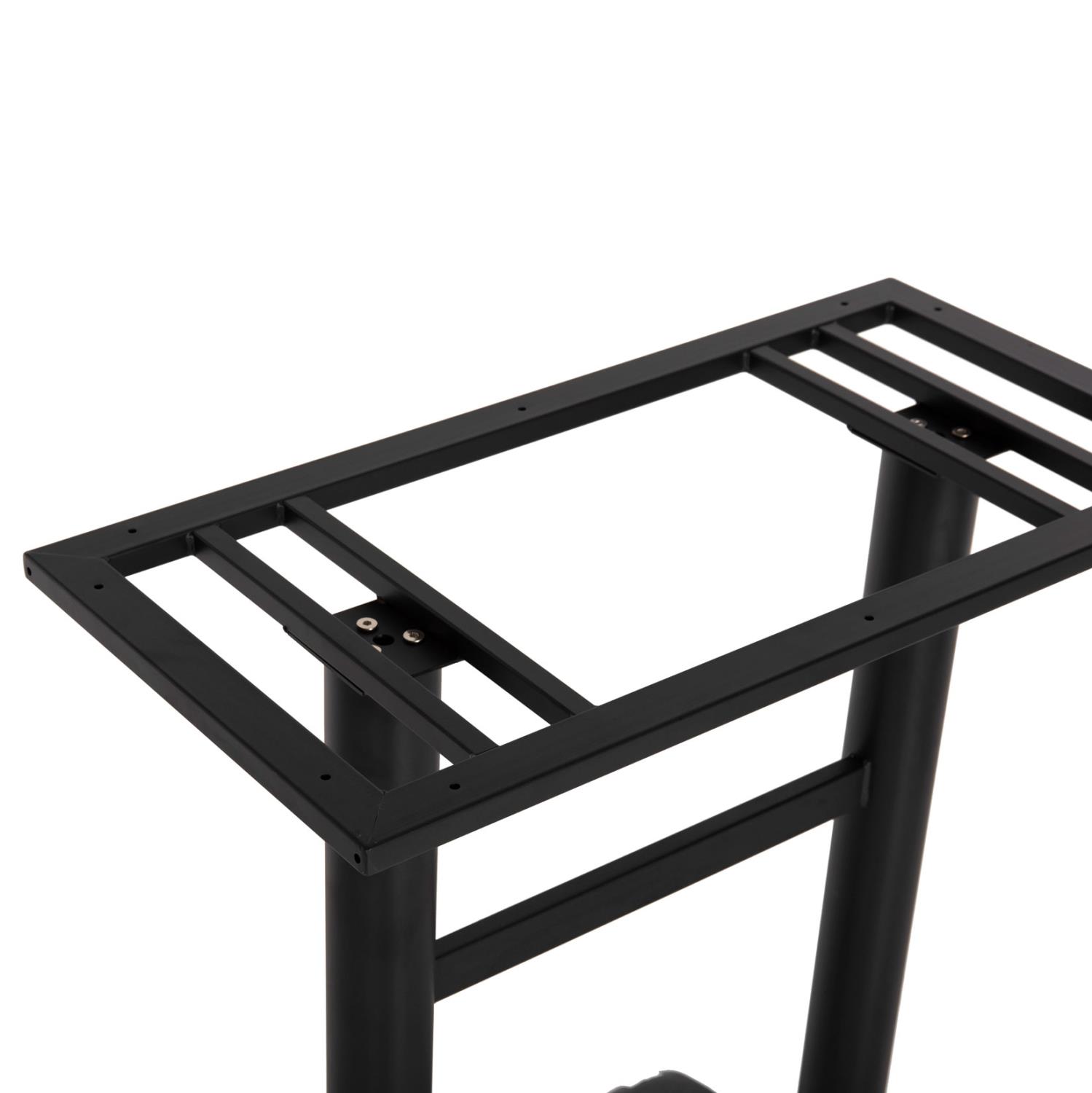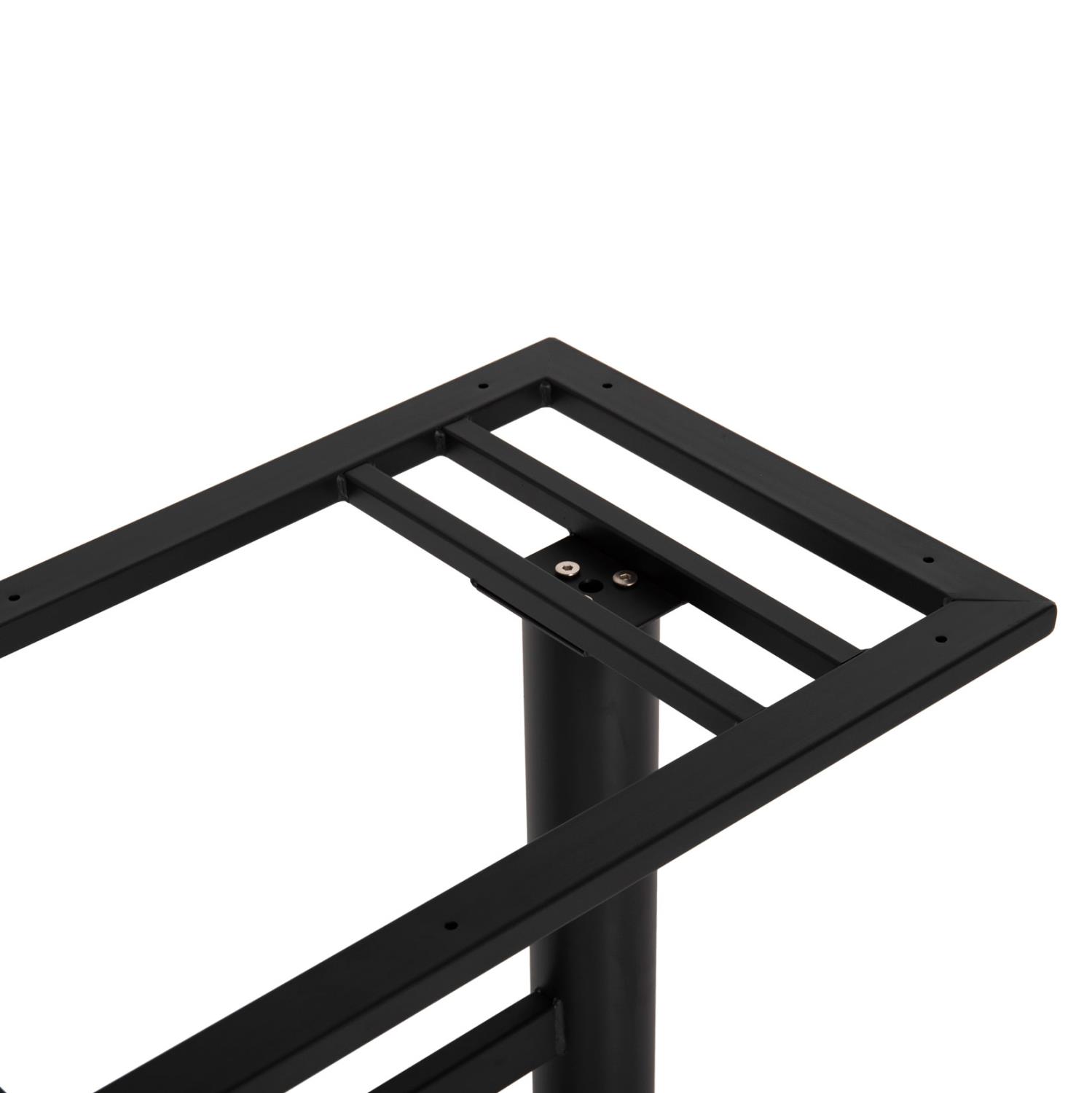 Η C479.01 είναι βάση μεσαίου ύψους για τραπέζι bar σε ΜΑΥΡΟ χρώμα. Αυτή η βάση είναι μεταλλική με 2 κολώνες που στηρίζονται σε δύο ελαφρώς αψιδωτά πέλματα. Αυτές οι κολώνες καταλήγουν στην βάση στήριξης της επιφάνειας που είναι ορθογώνια. Επίσης, στο κάτω μέρος της διαθέτει ρυθμιστές ύψους (ρεγουλατόρους). Ιδανική πρόταση για συνδυασμό με επιφάνειες σχεδόν κάθε είδους, όπως βερσαλίτες, HPL, MDF, κτλ.