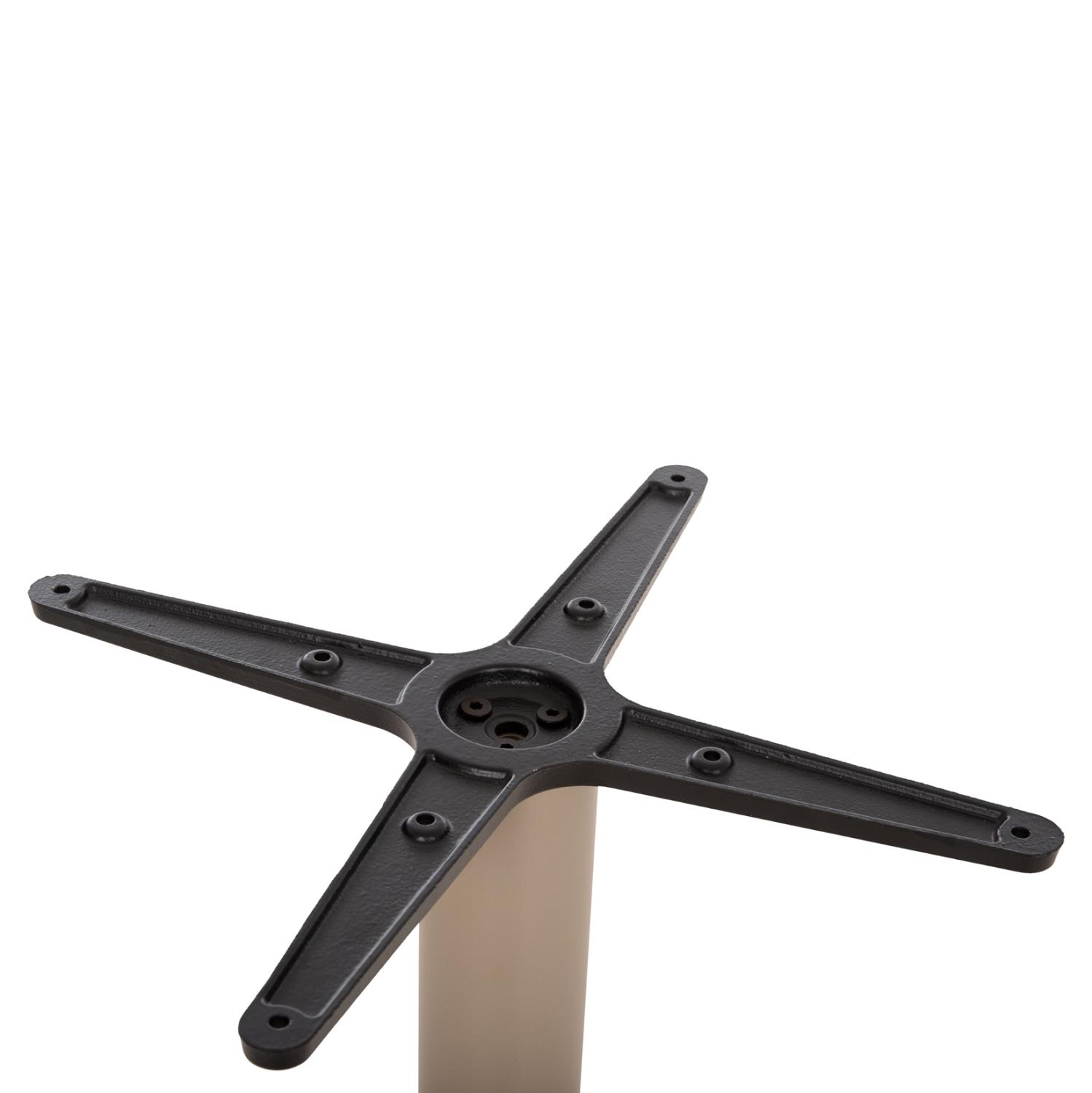 Η C476.25 είναι μια στρογγυλή βάση για τραπέζι σε ΚΑΠΟΥΤΣΙΝΟ χρώμα. Αυτή η βάση είναι αλουμινίου με ηλεκτροστατική βαφή, με μία κολώνα η οποία στηρίζεται σε μια βαριά επίπεδη αλουμινένια επιφάνεια. Το καπάκι που θα διαλέξετε στηρίζεται σε έναν «σταυρό», με αποτέλεσμα να μπορεί να δεχθεί τόσο στρογγυλά καπάκια, όσο και τετράγωνα. Επίσης, στο κάτω μέρος της διαθέτει ρυθμιστές ύψους (ρεγουλατόρους). Ιδανική πρόταση για συνδυασμό με επιφάνειες σχεδόν κάθε είδους, όπως βερσαλίτες, HPL, MDF, κτλ.