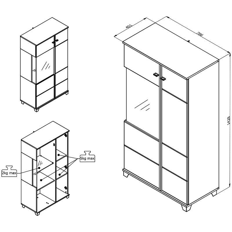 Πλάτος: 78.5, Βάθος: 40, Ύψος: 139.5 cm