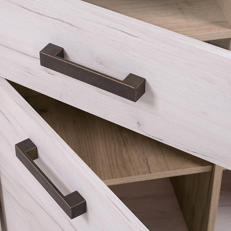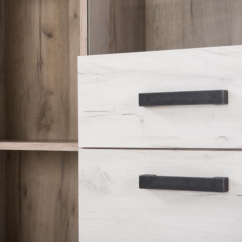 Ο συνδυασμός White Oak και Grey Oak δημιουργεί μια αρμονική και ζεστή ατμόσφαιρα, προσφέροντας ισορροπία στον χώρο. Αν θέλετε να προσθέσετε μια αίσθηση φρεσκάδας, προτείνουμε λεπτομέρειες σε χρώμα μέντας σε υφάσματα ή διακοσμητικά.