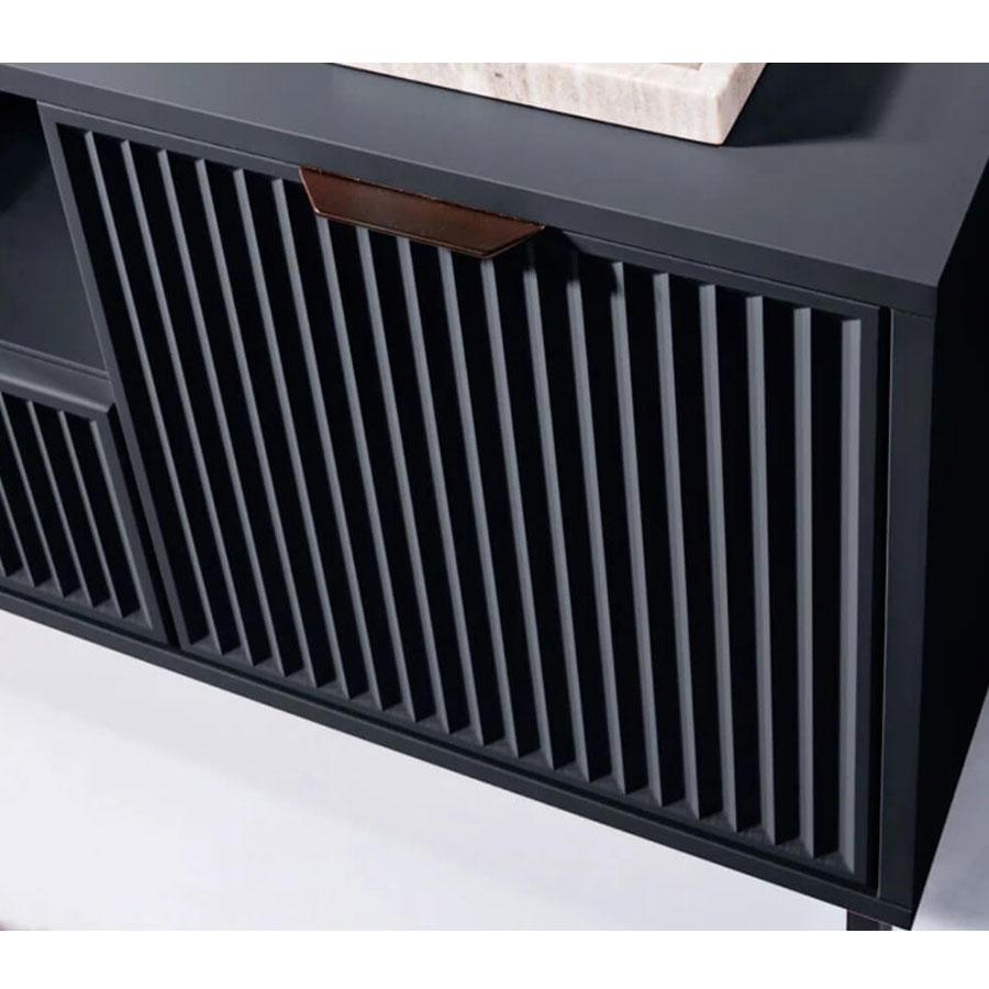 Η παρουσία του ενισχύεται από τα μαύρα μεταλλικά πόδια, που κάνουν το έπιπλο να φαίνεται υπερυψωμένο, και τα minimal μαύρα χερουλάκια, που προσθέτουν ένα industrial touch και δένουν αρμονικά με τον εκλεπτυσμένο χαρακτήρα του.