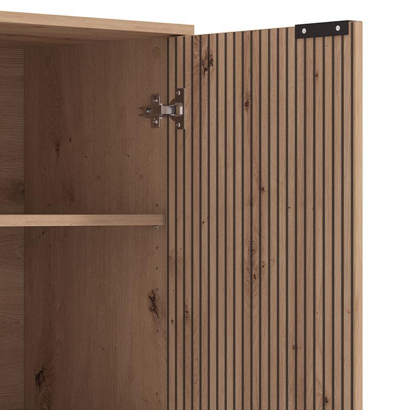 Ο συνδυασμός των αποχρώσεων artisan oak με μαύρες γραμμές και μαύρο ματ προσφέρει μια εκλεπτυσμένη και δυναμική αίσθηση στον χώρο. Το φυσικό χρώμα του ξύλου προσδίδει ζεστασιά, ενώ οι μαύρες πινελιές προσθέτουν κομψότητα και διαχρονικότητα. Μπορείτε να την στολίσετε με το σερβίτσιο σας, συλλεκτικά αντικείμενα, αγαπημένα βιβλία ή διακοσμητικά για να αναδείξετε το προσωπικό σας γούστο.