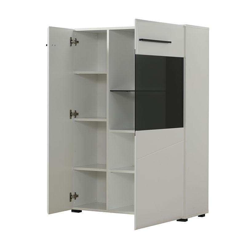 Βιτρίνα Trentino 2K VS1 Λευκό – Μαύρο – Λευκή Λάκα 87,5x35x124 εκ.