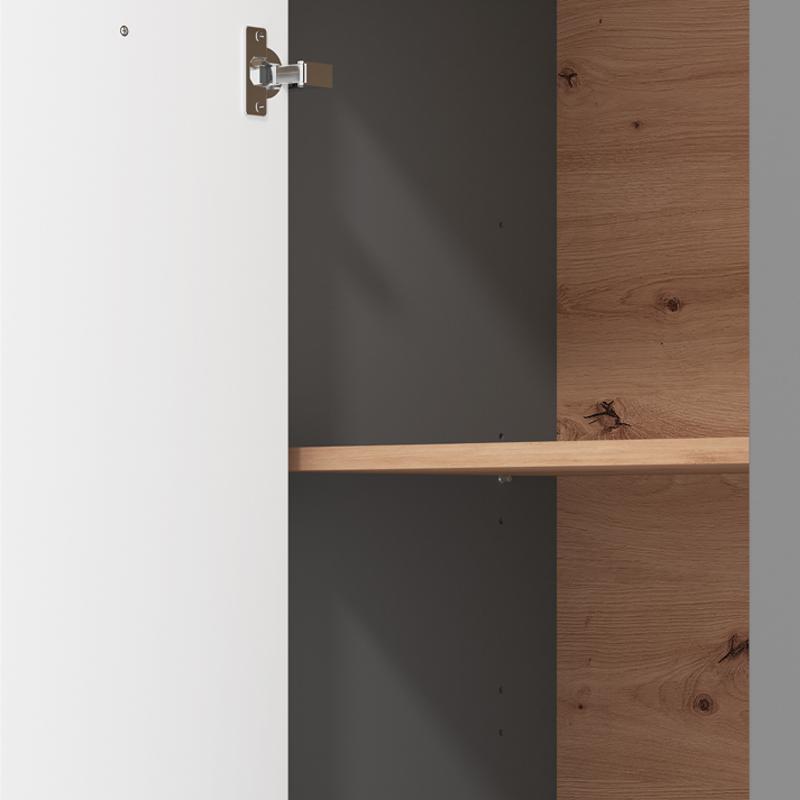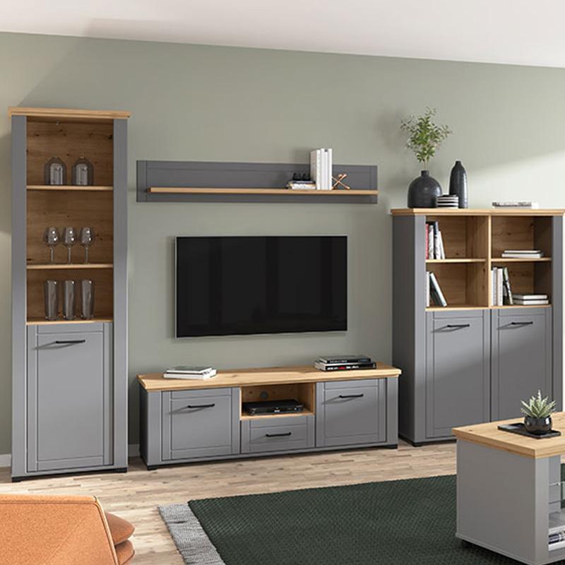 Ο συνδυασμός των αποχρώσεων γκρι γραφίτη, artisan oak και γκρι ματ μελαμίνης δημιουργεί μια ζεστή και αρμονική ατμόσφαιρα, προσδίδοντας αυθεντικότητα και κομψότητα στο εσωτερικό σας. Η minimal σχεδίαση της την καθιστά εύκολα προσαρμόσιμη σε διάφορους διακοσμητικούς συνδυασμούς, ενώ η ευέλικτη δομή της επιτρέπει να φιλοξενήσει και να αναδείξει το “καλό σερβίτσιο”, συλλεκτικά αντικείμενα, αγαπημένα βιβλία ή ακόμα και κομψά διακοσμητικά στοιχεία.