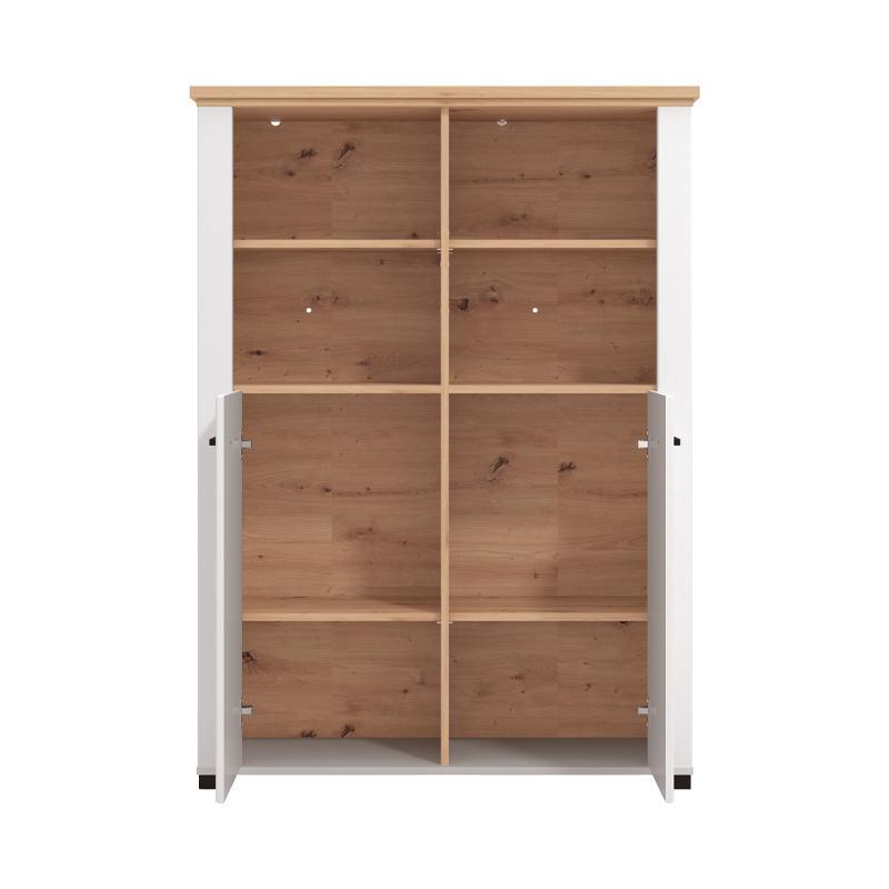 Η χρωματική παλέτα της, σε αποχρώσεις λευκού, artisan oak και λευκής ματ μελαμίνης, προσφέρει ένα φωτεινό και ζεστό αποτέλεσμα, ενώ παράλληλα διατηρεί την κομψότητα που χρειάζεται ένας μοντέρνος ή κλασικός χώρος. Η βιτρίνα Valencia συνδυάζει την υψηλή ποιότητα κατασκευής με πρακτικότητα και αισθητική, αποτελώντας μια προσθήκη που θα απογειώσει τον χώρο σας, προσφέροντας οργάνωση και φινέτσα.