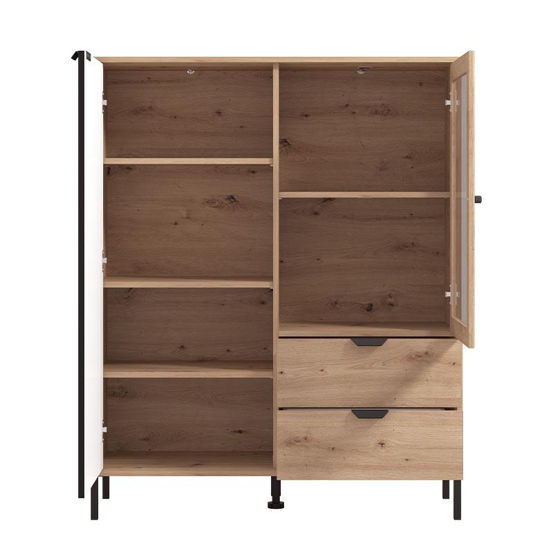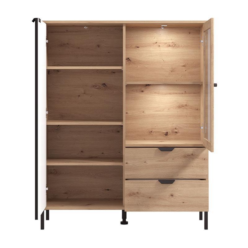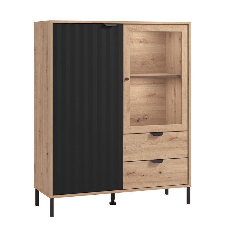 Ο συνδυασμός των αποχρώσεων Artisan Oak και Μαύρου Ματ δημιουργεί μια μοναδική αντίθεση που αποπνέει κομψότητα και δυναμικότητα. Η φυσική υφή του ξύλου προσδίδει έναν οικείο και φιλόξενο χαρακτήρα, ενώ οι σκούρες λεπτομέρειες ενισχύουν τη διαχρονική αισθητική του επίπλου. Μπορείτε να τη χρησιμοποιήσετε για την αποθήκευση και την ανάδειξη αγαπημένων σας αντικειμένων, όπως διακοσμητικά, βιβλία ή συλλεκτικά σερβίτσια.