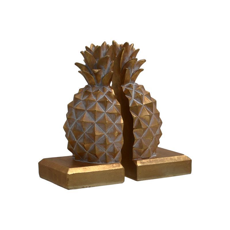 Σετ Βιβλιοστάτες 2τεμ. "Ανανάς" FL531 Fylliana Polyresin Χρυσό-Λευκό χρώμα 9x9x19εκ