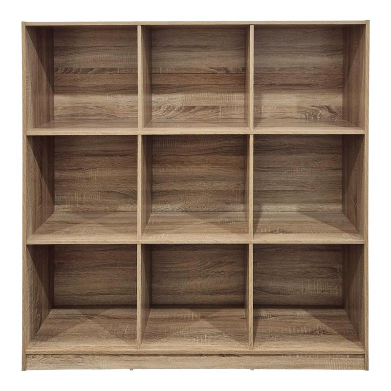 - Φέρει εννέα ανοιχτούς χώρους αποθήκευσης-στήριξης βιβλίων, εγγράφων αλλά και για την δημιουργία διακοσμητικών συνθέσεων.