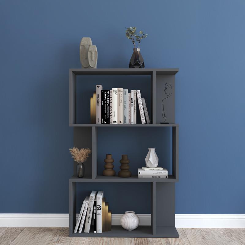 Βιβλιοθήκη Kadu ανθρακί 72x22x108 εκ.
