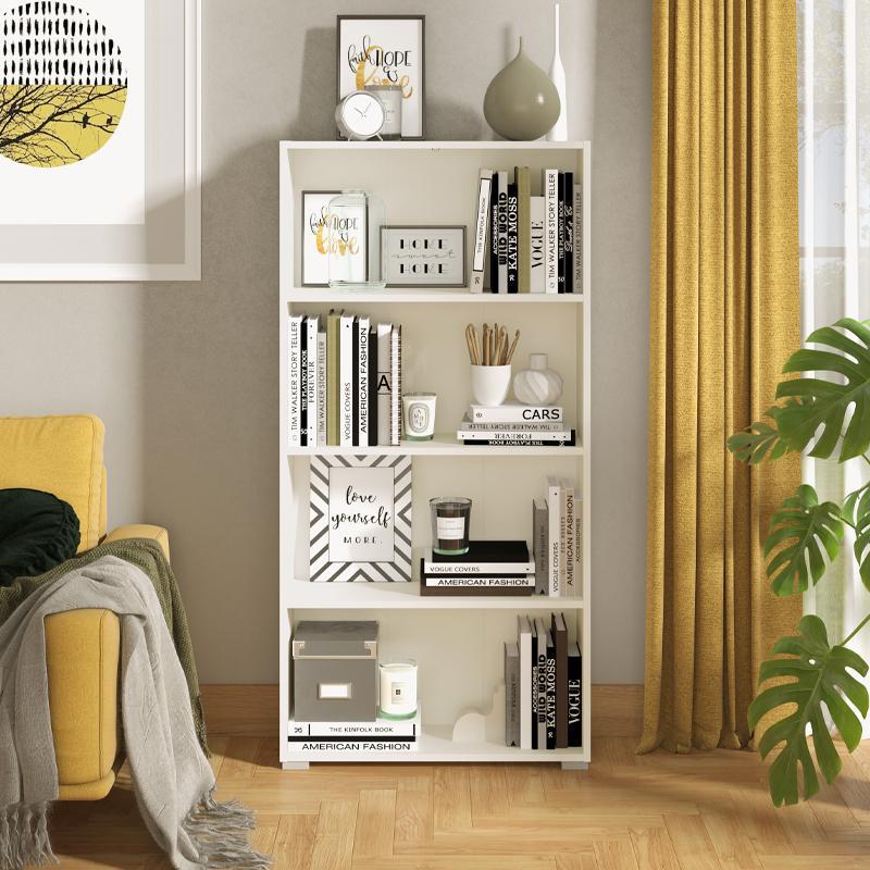 Η βιβλιοθήκη Tomar 4, σε φωτεινή λευκή απόχρωση, είναι ένα κομμάτι που σχεδιάστηκε ειδικά για να φιλοξενεί και να οργανώνει βιβλία ή άλλα διακοσμητικά αντικείμενα. Έχει λειτουργική διάταξη ραφιών, διαθέτει τέσσερα ράφια συνολικά, βολικά για να διευκολύνει την πρόσβαση στα βιβλία και την ανάγνωση. Ο σχεδιασμός της βιβλιοθήκης προσθέτει στοιχεία διακόσμησης και αισθητικής στον χώρο του δωματίου ή του γραφείου που βρίσκεται.