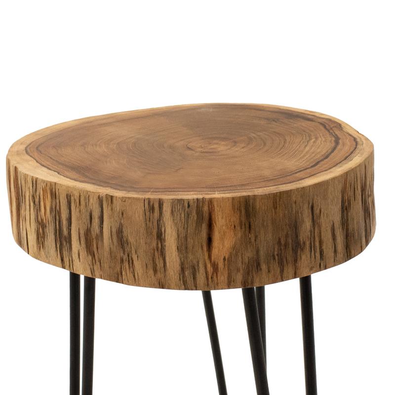 - Κατασκευασμένη από ξύλο ακακίας . Διατηρεί τα φυσικά νερά, τους δακτυλίους ανάπτυξης και τις ακανόνιστες άκρες, προσδίδοντας αυθεντικό και μοναδικό χαρακτήρα. Η επιφάνεια μπορεί να διαθέτει ένθετα (όπως φαίνεται στην εικόνα) για την ενίσχυση της δομής ή την αισθητική ανάδειξη φυσικών ρωγμών, προσθέτοντας το στοιχείο χειροποίητης τέχνης.