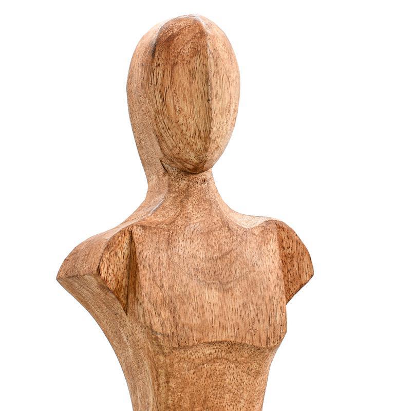 Η φιγούρα της γυναίκας, με τις καμπύλες και τη λεπτομερή σχεδίαση, προσδίδει μια αίσθηση κομψότητας και δυναμισμού, ενώ το φυσικό φινίρισμα αναδεικνύει την αυθεντικότητα και τη φυσικότητα του ξύλου.